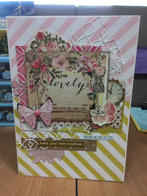 This card has a little bit more of a layered look but I mostly kept the layering at one side. For some extra dimension, I used a chipboard sticker crown to adorn the 'hello gorgeous sticker.' It may look like a strange combination but somehow it worked, haha. Because I wanted to give this card a little bit of a Diva appeal.